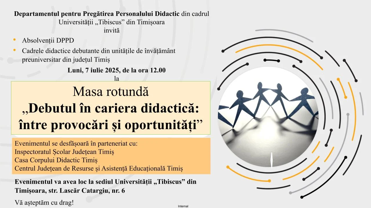 Departamentul pentru Pregătirea Personalului Didactic din cadrul Universității „Tibiscus” din Timișoara invită Luni, 7 iulie…